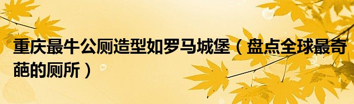 大家好,綜合小編來為大家講解下。重慶最牛公廁造型如羅馬城堡,盤點全球最奇葩的廁所很多人還不知道,現在讓我們一起來看看吧!