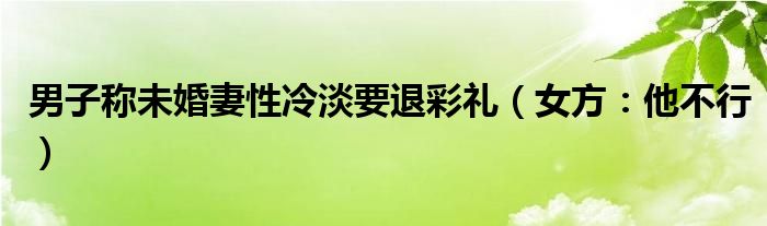 大家好,綜合小編來為大家講解下。男子稱未婚妻性冷淡要退彩禮,女方:他不行很多人還不知道,現(xiàn)在讓我們一起來看看吧!