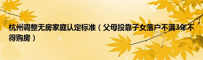 大家好,綜合小編來為大家講解下。杭州調整無房家庭認定標準,父母投靠子女落戶不滿3年不得購房很多人還不知道,現在讓我們一起來看看吧!