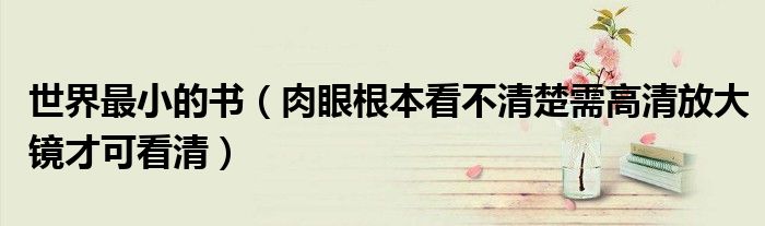 大家好,綜合小編來為大家講解下。世界最小的書,肉眼根本看不清楚需高清放大鏡才可看清很多人還不知道,現在讓我們一起來看看吧!