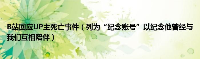 大家好,綜合小編來(lái)為大家講解下。B站回應(yīng)UP主死亡事件,列為“紀(jì)念賬號(hào)”以紀(jì)念他曾經(jīng)與我們互相陪伴很多人還不知道,現(xiàn)在讓我們一起來(lái)看看吧!