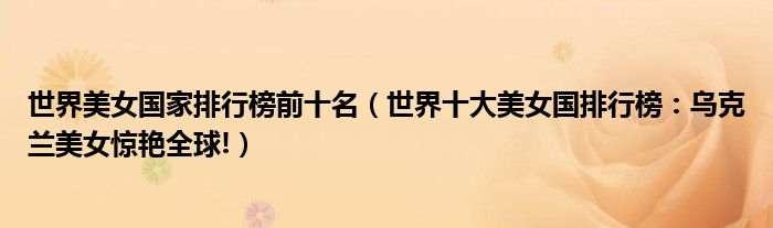 大家好,綜合小編來為大家講解下。世界美女國家排行榜前十名,世界十大美女國排行榜:烏克蘭美女驚艷全球!很多人還不知道,現在讓我們一起來看看吧!