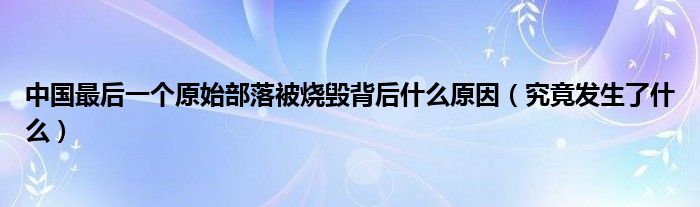 大家好,綜合小編來為大家講解下。中國最后一個(gè)原始部落被燒毀背后什么原因,究竟發(fā)生了什么很多人還不知道,現(xiàn)在讓我們一起來看看吧!