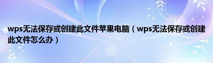 大家好,綜合小編來為大家講解下。wps無法保存或創建此文件蘋果電腦,wps無法保存或創建此文件怎么辦很多人還不知道,現在讓我們一起來看看吧!