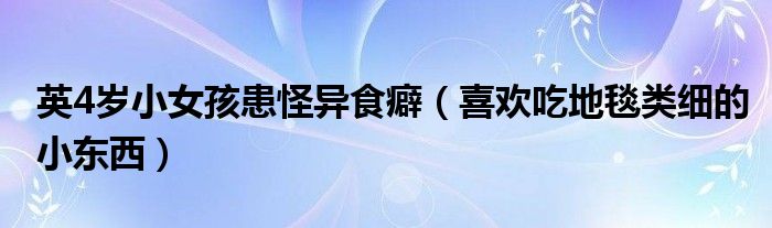大家好,綜合小編來為大家講解下。英4歲小女孩患怪異食癖,喜歡吃地毯類細的小東西很多人還不知道,現在讓我們一起來看看吧!