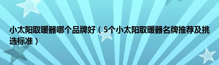 大家好,綜合小編來為大家講解下。小太陽取暖器哪個品牌好,5個小太陽取暖器名牌推薦及挑選標準很多人還不知道,現在讓我們一起來看看吧!