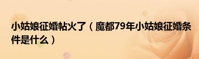 大家好,綜合小編來(lái)為大家講解下。小姑娘征婚帖火了,魔都79年小姑娘征婚條件是什么很多人還不知道,現(xiàn)在讓我們一起來(lái)看看吧!