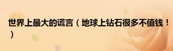 大家好,綜合小編來為大家講解下。世界上最大的謊言,地球上鉆石很多不值錢!很多人還不知道,現在讓我們一起來看看吧!