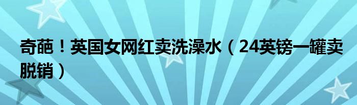 大家好,綜合小編來為大家講解下。奇葩!英國女網紅賣洗澡水,24英鎊一罐賣脫銷很多人還不知道,現在讓我們一起來看看吧!