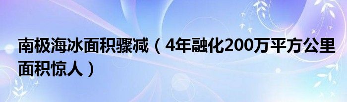 大家好,綜合小編來為大家講解下。南極海冰面積驟減,4年融化200萬平方公里面積驚人很多人還不知道,現在讓我們一起來看看吧!