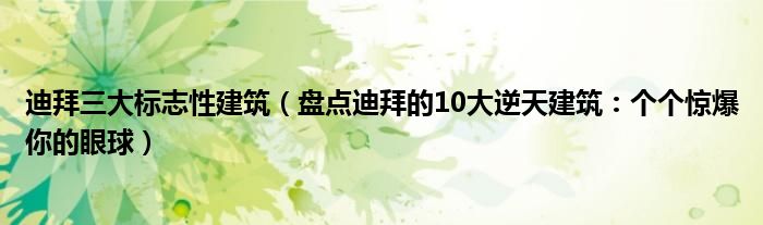 大家好,綜合小編來為大家講解下。迪拜三大標志性建筑,盤點迪拜的10大逆天建筑:個個驚爆你的眼球很多人還不知道,現在讓我們一起來看看吧!