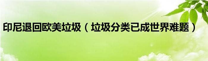 大家好,綜合小編來為大家講解下。印尼退回歐美垃圾,垃圾分類已成世界難題很多人還不知道,現在讓我們一起來看看吧!