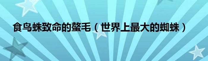 大家好,綜合小編來為大家講解下。食鳥蛛致命的螯毛,世界上最大的蜘蛛很多人還不知道,現在讓我們一起來看看吧!