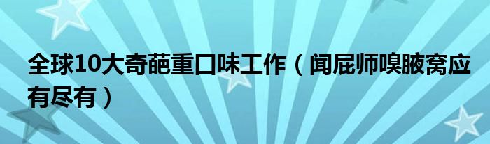 大家好,綜合小編來為大家講解下。全球10大奇葩重口味工作,聞屁師嗅腋窩應(yīng)有盡有很多人還不知道,現(xiàn)在讓我們一起來看看吧!