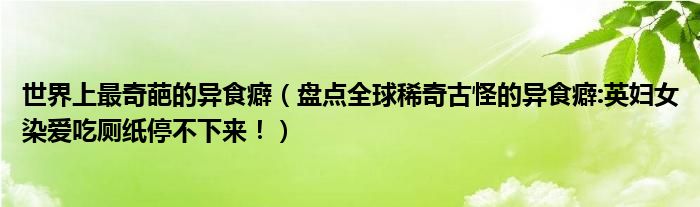四海奇聞綜合:盤點(diǎn)全球稀奇古怪的異食癖:英婦女染愛吃廁紙停不下來!世界之大無奇不有,這個(gè)世界上有那么一群人,放著美食不享用,專吃一些稀奇古怪的東西,而且還上癮,在醫(yī)院范圍成為異食癖,下面就跟著奇聞小編來看看世界上稀奇古怪的異食癖,絕對讓你漲姿勢。