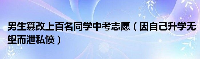 大家好,綜合小編來為大家講解下。男生篡改上百名同學中考志愿,因自己升學無望而泄私憤很多人還不知道,現在讓我們一起來看看吧!