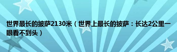 大家好,綜合小編來為大家講解下。世界最長的披薩2130米,世界上最長的披薩:長達2公里一眼看不到頭很多人還不知道,現在讓我們一起來看看吧!