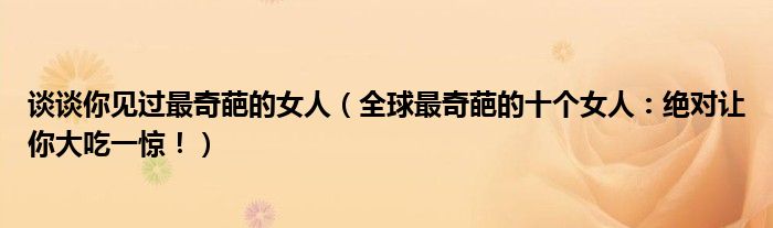 大家好,綜合小編來為大家講解下。談談你見過最奇葩的女人,全球最奇葩的十個女人:絕對讓你大吃一驚!很多人還不知道,現在讓我們一起來看看吧!