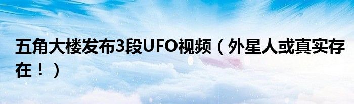 大家好,綜合小編來為大家講解下。五角大樓發布3段UFO視頻,外星人或真實存在!很多人還不知道,現在讓我們一起來看看吧!