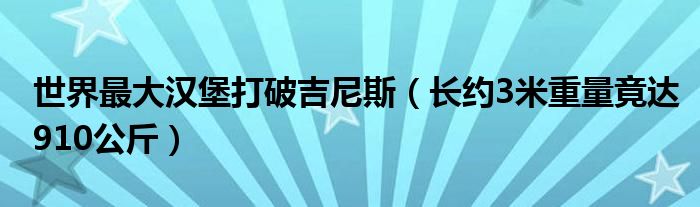 大家好,綜合小編來為大家講解下。世界最大漢堡打破吉尼斯,長約3米重量竟達910公斤很多人還不知道,現(xiàn)在讓我們一起來看看吧!