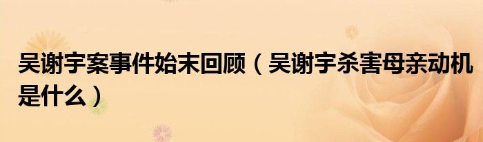 大家好,綜合小編來為大家講解下。吳謝宇案事件始末回顧,吳謝宇殺害母親動機是什么很多人還不知道,現在讓我們一起來看看吧!