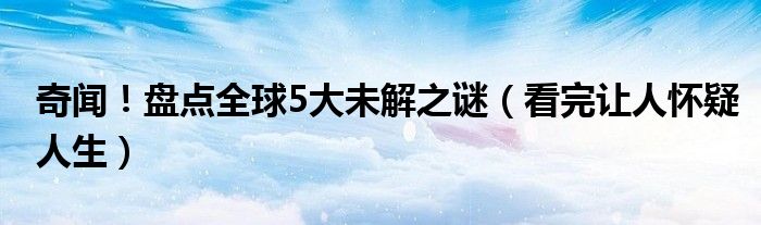 大家好,綜合小編來(lái)為大家講解下。奇聞!盤(pán)點(diǎn)全球5大未解之謎,看完讓人懷疑人生很多人還不知道,現(xiàn)在讓我們一起來(lái)看看吧!