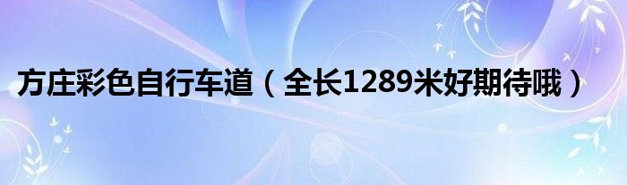 大家好,綜合小編來為大家講解下。方莊彩色自行車道,全長1289米好期待哦很多人還不知道,現在讓我們一起來看看吧!