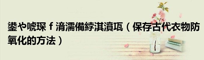 大家好,綜合小編來為大家講解下。鍙や唬琛f湇濡備綍淇濆瓨,保存古代衣物防氧化的方法很多人還不知道,現(xiàn)在讓我們一起來看看吧!