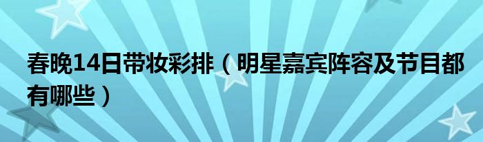 大家好,綜合小編來為大家講解下。春晚14日帶妝彩排,明星嘉賓陣容及節目都有哪些很多人還不知道,現在讓我們一起來看看吧!