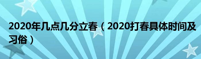 大家好,綜合小編來為大家講解下。2020年幾點幾分立春,2020打春具體時間及習俗很多人還不知道,現(xiàn)在讓我們一起來看看吧!