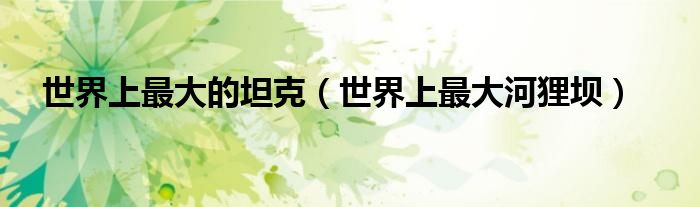 大家好,綜合小編來(lái)為大家講解下。世界上最大的坦克,世界上最大河貍壩很多人還不知道,現(xiàn)在讓我們一起來(lái)看看吧!