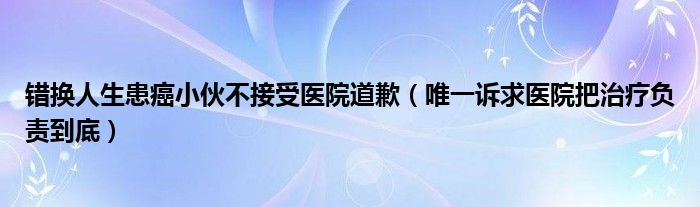 大家好,綜合小編來為大家講解下。錯(cuò)換人生患癌小伙不接受醫(yī)院道歉,唯一訴求醫(yī)院把治療負(fù)責(zé)到底很多人還不知道,現(xiàn)在讓我們一起來看看吧!