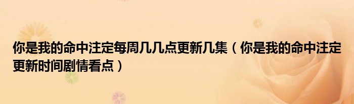 大家好,綜合小編來(lái)為大家講解下。你是我的命中注定每周幾幾點(diǎn)更新幾集,你是我的命中注定更新時(shí)間劇情看點(diǎn)很多人還不知道,現(xiàn)在讓我們一起來(lái)看看吧!