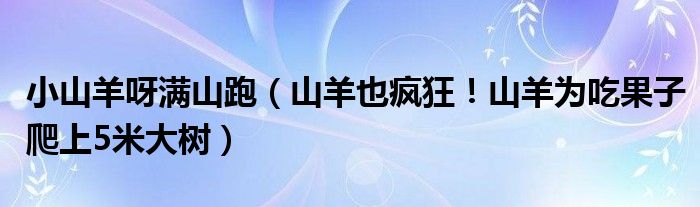 大家好,綜合小編來為大家講解下。小山羊呀滿山跑,山羊也瘋狂!山羊為吃果子爬上5米大樹很多人還不知道,現在讓我們一起來看看吧!