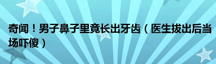 大家好,綜合小編來為大家講解下。奇聞!男子鼻子里竟長出牙齒,醫生拔出后當場嚇傻很多人還不知道,現在讓我們一起來看看吧!