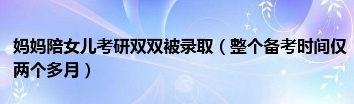 大家好,綜合小編來為大家講解下。媽媽陪女兒考研雙雙被錄取,整個備考時間僅兩個多月很多人還不知道,現在讓我們一起來看看吧!