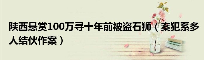 大家好,綜合小編來為大家講解下。陜西懸賞100萬尋十年前被盜石獅,案犯系多人結伙作案很多人還不知道,現在讓我們一起來看看吧!