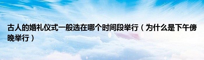 大家好,綜合小編來為大家講解下。古人的婚禮儀式一般選在哪個時間段舉行,為什么是下午傍晚舉行很多人還不知道,現在讓我們一起來看看吧!