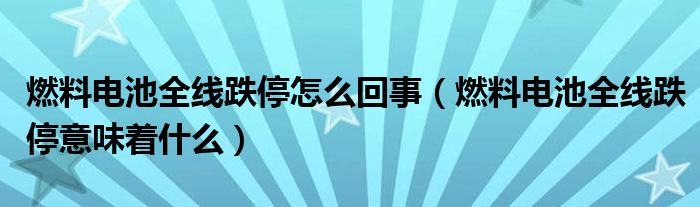 大家好,綜合小編來為大家講解下。燃料電池全線跌停怎么回事,燃料電池全線跌停意味著什么很多人還不知道,現在讓我們一起來看看吧!