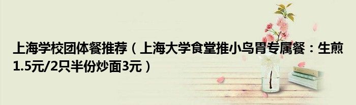 大家好,綜合小編來為大家講解下。上海學(xué)校團(tuán)體餐推薦,上海大學(xué)食堂推小鳥胃專屬餐:生煎1.5元/2只半份炒面3元很多人還不知道,現(xiàn)在讓我們一起來看看吧!