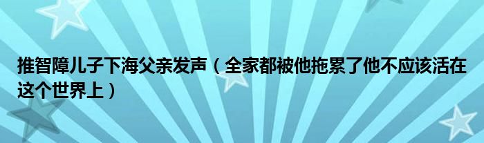 大家好,綜合小編來為大家講解下。推智障兒子下海父親發聲,全家都被他拖累了他不應該活在這個世界上很多人還不知道,現在讓我們一起來看看吧!