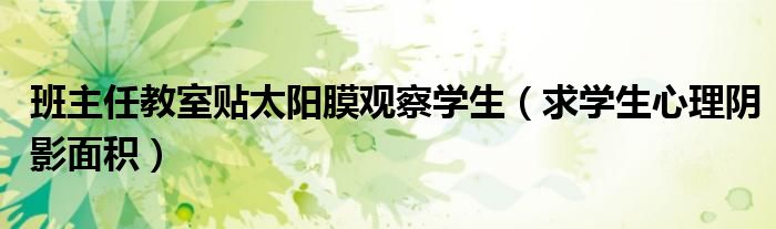 大家好,綜合小編來為大家講解下。班主任教室貼太陽膜觀察學生,求學生心理陰影面積很多人還不知道,現(xiàn)在讓我們一起來看看吧!