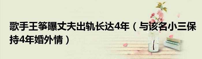 大家好,綜合小編來為大家講解下。歌手王箏曝丈夫出軌長達4年,與該名小三保持4年婚外情很多人還不知道,現在讓我們一起來看看吧!