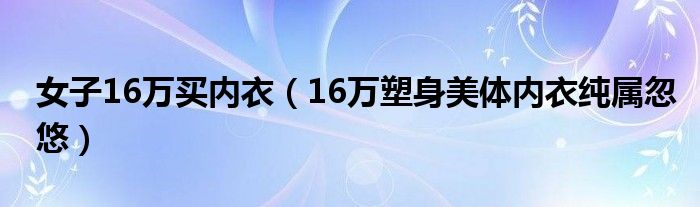 大家好,綜合小編來為大家講解下。女子16萬買內衣,16萬塑身美體內衣純屬忽悠很多人還不知道,現在讓我們一起來看看吧!