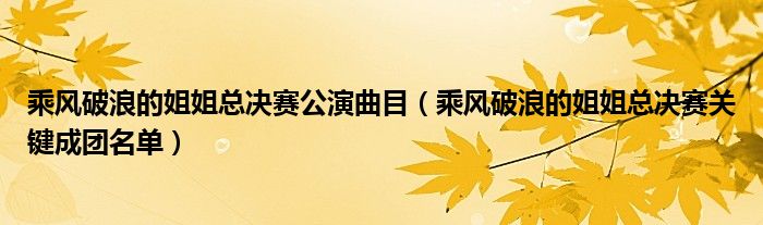 大家好,綜合小編來為大家講解下。乘風破浪的姐姐總決賽公演曲目,乘風破浪的姐姐總決賽關鍵成團名單很多人還不知道,現在讓我們一起來看看吧!