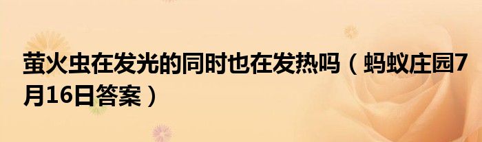 今天支付寶螞蟻莊園2020年7月16日莊園小課堂的答案是什么呢?螞蟻莊園莊園小課堂2020年7月16日的問題是【螢火蟲在發光的同時也在發熱嗎。下面小編就為大家帶來了答案,不清楚的朋友快來看看吧。