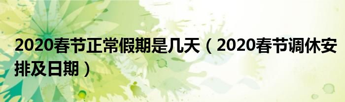 大家好,綜合小編來為大家講解下。2020春節(jié)正常假期是幾天,2020春節(jié)調(diào)休安排及日期很多人還不知道,現(xiàn)在讓我們一起來看看吧!