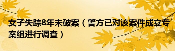 大家好,綜合小編來為大家講解下。女子失蹤8年未破案,警方已對該案件成立專案組進行調查很多人還不知道,現在讓我們一起來看看吧!