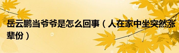 大家好,綜合小編來為大家講解下。岳云鵬當爺爺是怎么回事,人在家中坐突然漲輩份很多人還不知道,現在讓我們一起來看看吧!