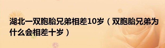大家好,綜合小編來為大家講解下。湖北一雙胞胎兄弟相差10歲,雙胞胎兄弟為什么會相差十歲很多人還不知道,現在讓我們一起來看看吧!